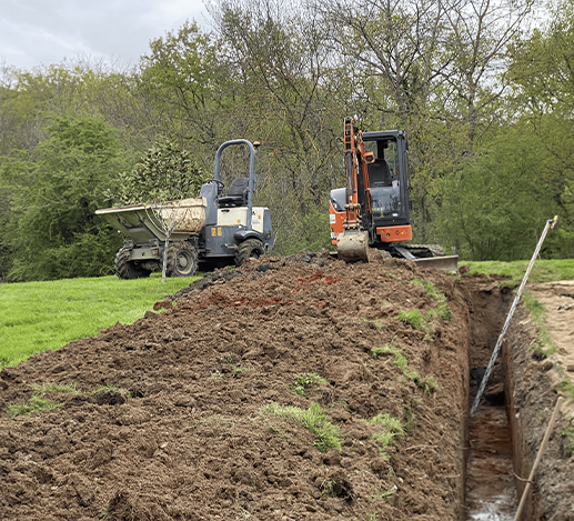 Nous assurons la pérennité de vos constructions grâce à des solutions efficaces contre l’humidité. Notre intervention comprend le terrassement jusqu’aux fondations, la pose de protections de soubassement performantes et l’installation de systèmes de drainage adaptés. Nous concevons par ailleurs des solutions spécifiques pour l’évacuation des eaux sur les terrains agricoles et les carrières équestres.